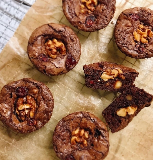 ・クーベルチュールチョコレート (原材料の一部に大豆、乳成分を含む)・鶏卵・砂糖・バター・小麦粉・ココアパウダー・塩(沖縄産)・クルミ・ドライクランベリー